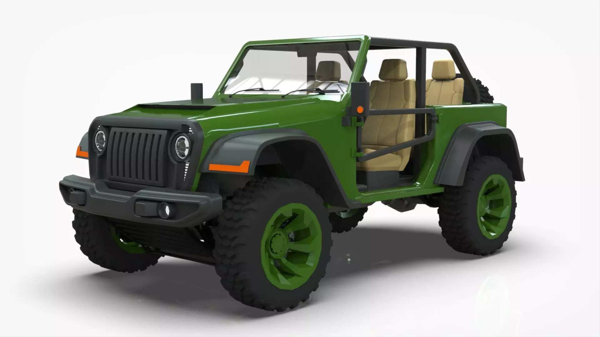 Conceptual off-road vehicle inspired by a 2023 Willys Jeep Wrangler. It is an original design vehicle free of copyright from the Jeep brands, no logos or brand names were used. lowpoly modeling in blender. all meshes separated by materials in the blender directory for easy manipulation in game engines. 38608 Faces, 40998 Vertices, 71591 Triangles.
