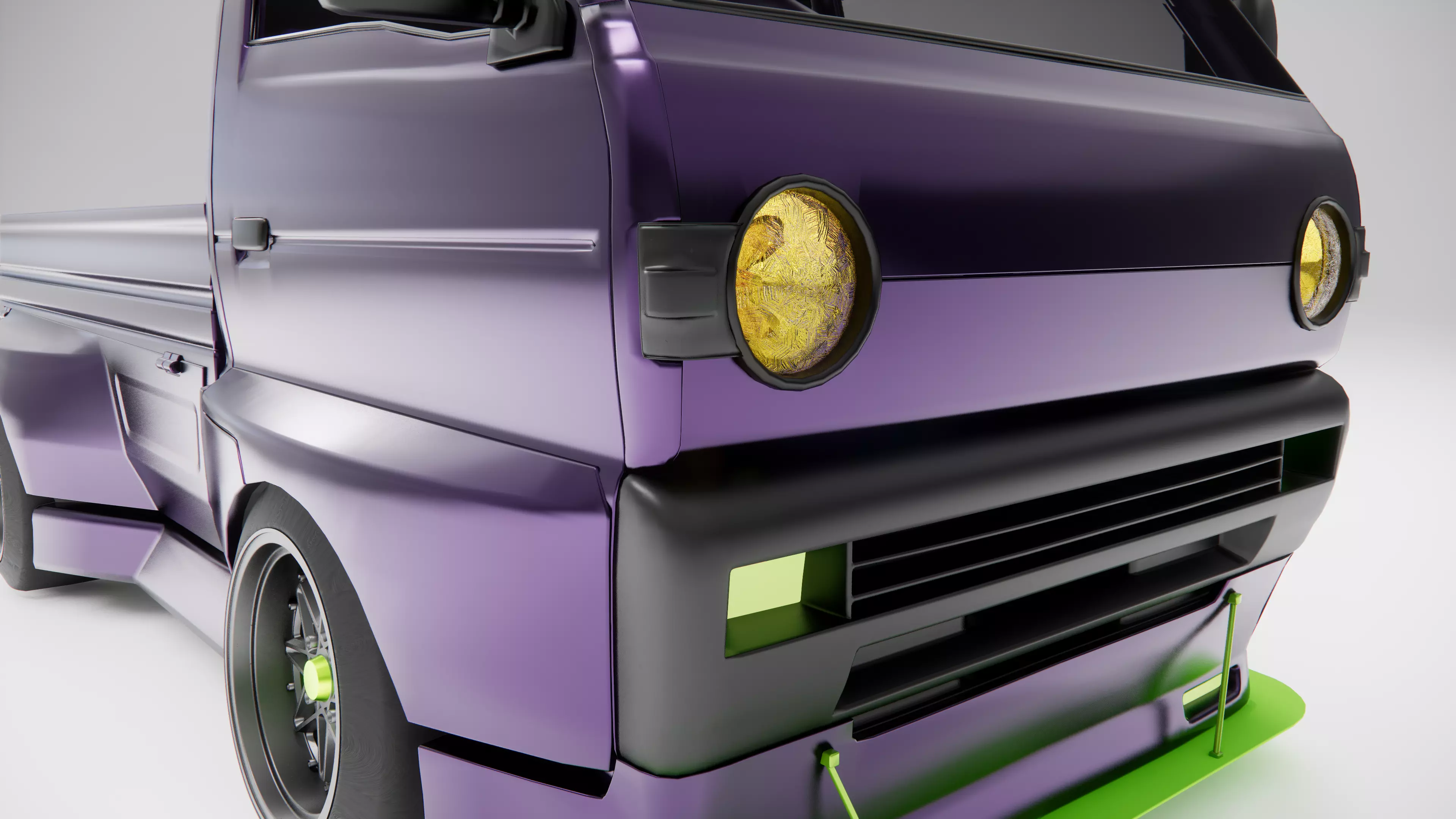 Introducing an exquisitely designed 3D model of a pickup truck that's ready to elevate your design projects to the next level. This meticulously crafted model features a sleek and modern exterior with a vibrant purple hue that's sure to stand out in any rendering or visualization. Its robust design is not only visually appealing but also represents a perfect blend of functionality and form.