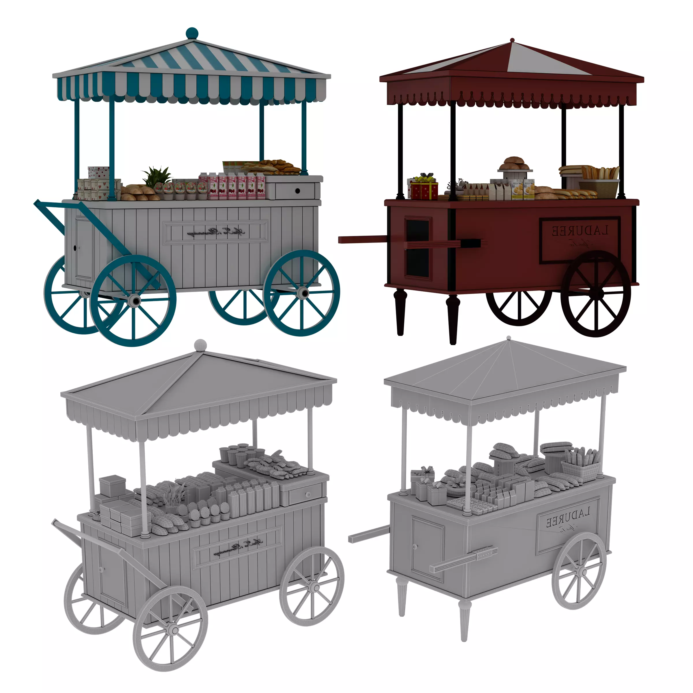 The model has material settings that define how surfaces look (color, shine, transparency, etc.).