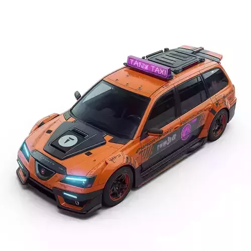 Tagstaxi, cab, cyberpunk, 3D model, futuristic car, urban vehicle, PBR materials, performance car, tuned taxi, sci-fi vehicle, game ready, widebody, custom taxi, neon lights, 4k textures
