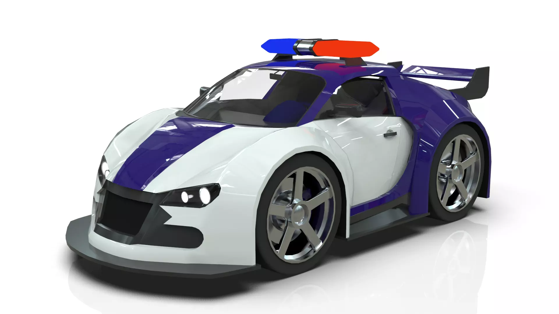 This is a stylized low-poly police supercar model inspired by Bugatti aesthetics, designed for use in video games, real-time applications, and stylized animations. The model features a clean topology with a total count of 10,423 faces, making it well-balanced for performance and visual quality.
