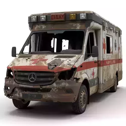 Tags: ambulance, medical, van, car, wrecked, vehicle, abandoned, ruined, destroyed, apocalypse, war, rust, transport, debris, rubble, realistic, wasteland, environment, post-apocalypse, pbr, prop