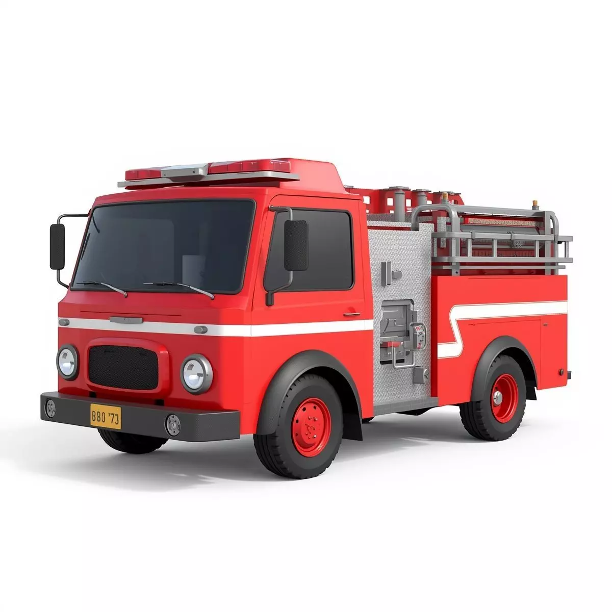 A high-quality 3D model of a chunky, stylized fire truck, designed for professional use in mobile games, children’s animations, and casual virtual environments. This asset features a vibrant red finish with classic white emergency stripes, detailed side panels, and a simplified Pixar-style aesthetic. Please note that this model is not rigged. It is prepared for immediate integration into your preferred rendering engine or 3D software.