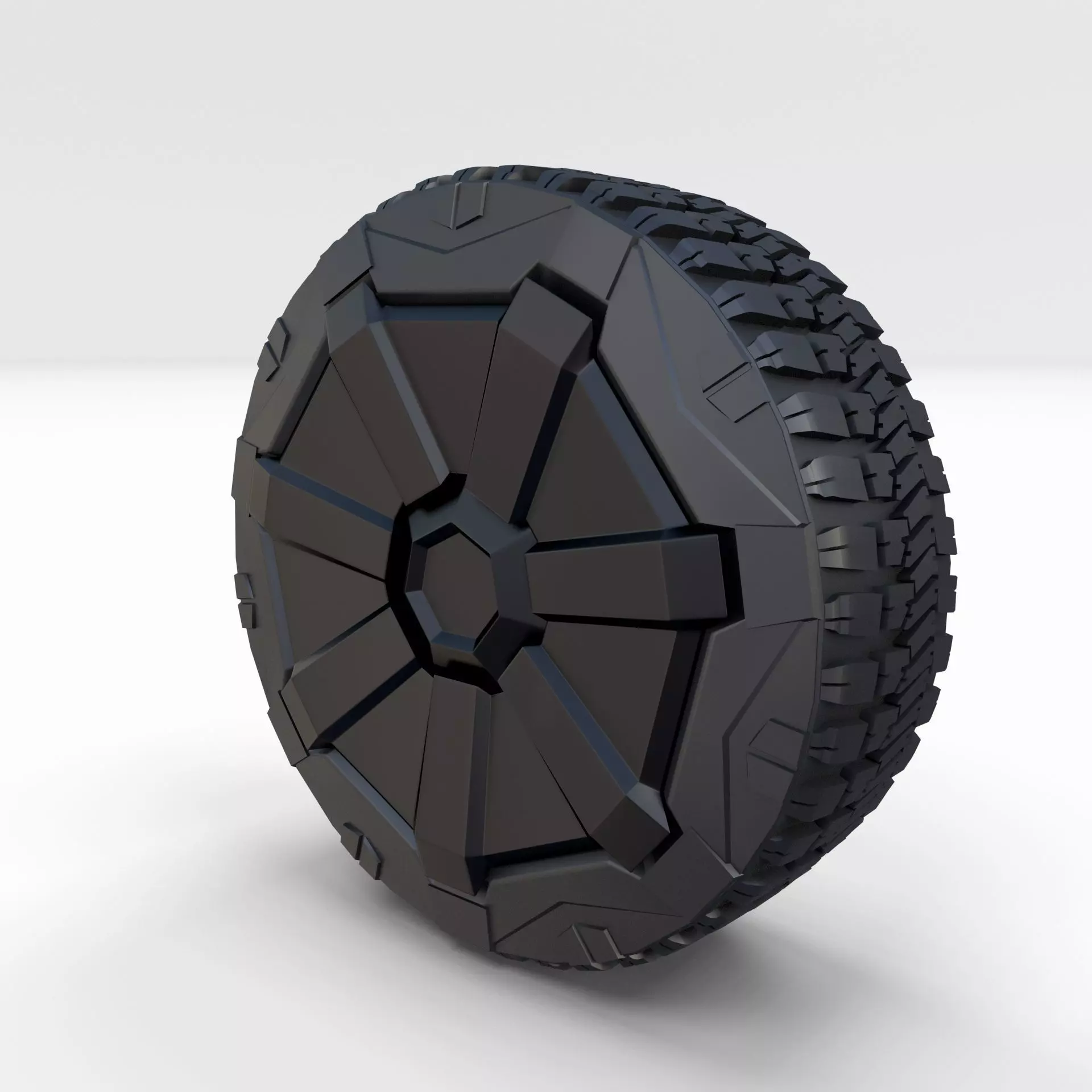 Tesla Cybertruck Wheel built in Blender and rendered with Cycles, as per seen on attached images.