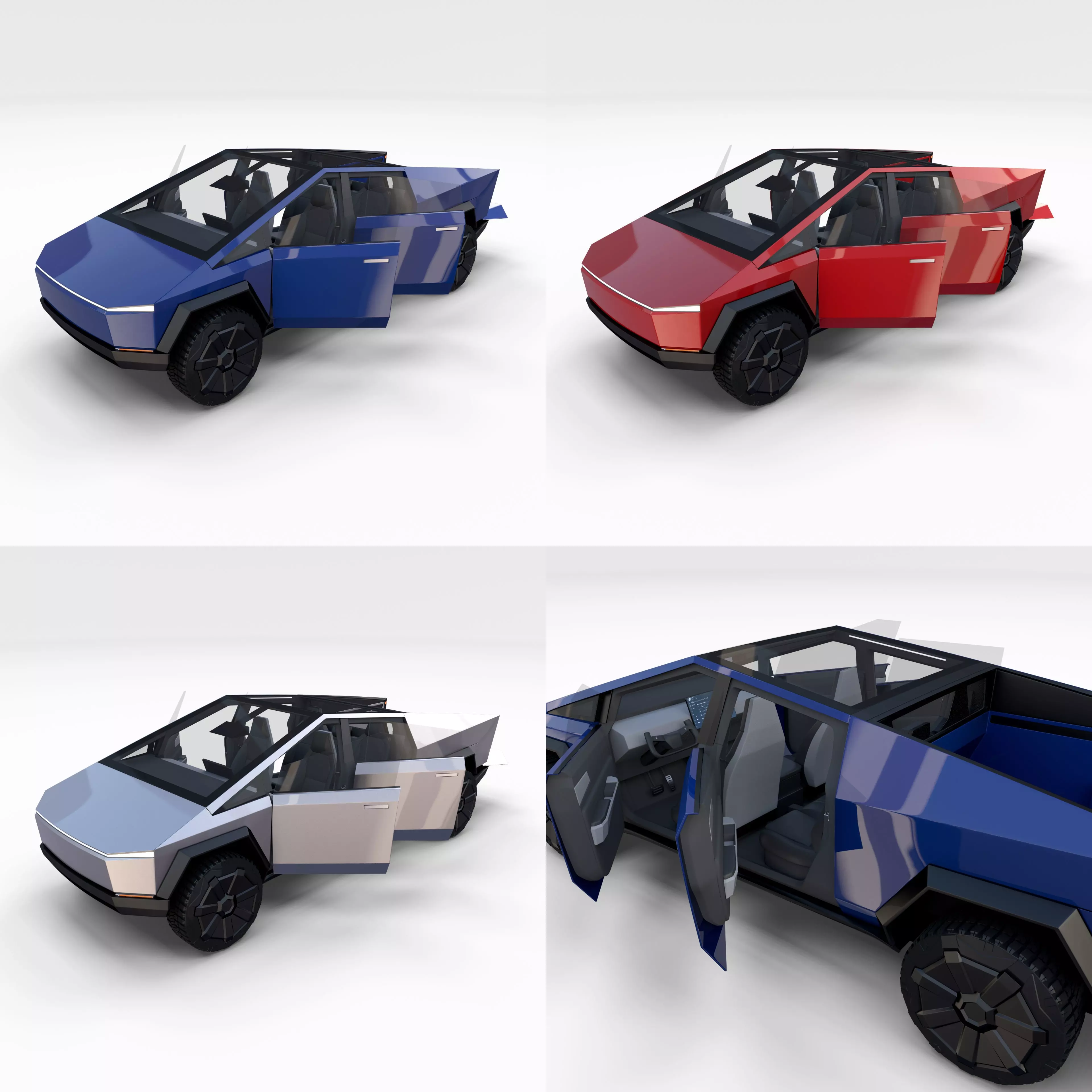 Tesla Cybertruck with a detailed interior 3d model pack built in 3DS MAX, rendered with Cycles in Blender, as per seen on attached images.