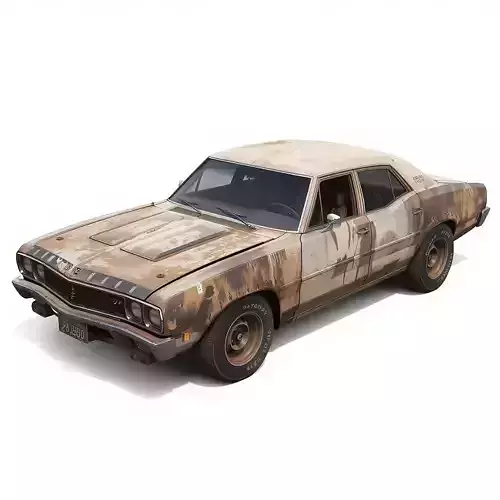 Tagsmuscle car, exposed engine, v8, rusted vehicle, wasteland, 3D model, custom car, pbr materials, post-apocalyptic, widebody, vintage muscle, game ready