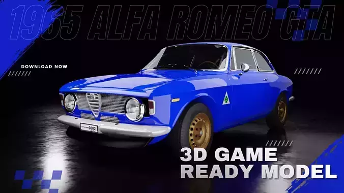 To Create This 1965 Alfa Romeo GTA Car Model We used Autodesk Maya & Blender Software. And also used substance 3d painter for texture paint and blender cycle engine to render this model.This model is a high resolution model and is suitable for a AAA game. It is uv unwrapped and pbr texture ready File.