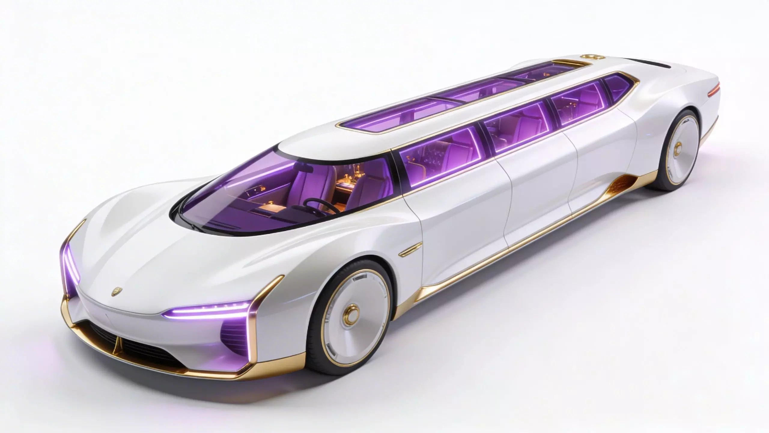 TagsLimousine, UltraLuxury, SciFiCar, 3DModel, Futuristic, Elongated, WhiteGloss, GoldTrim, PurpleNeon, SupercarAesthetics, GameAsset, Realistic, PBR, HighTech, Cyberpunk, VIPTransport, ConceptVehicle, Aerodynamic, EmissiveLighting, EnvironmentProp