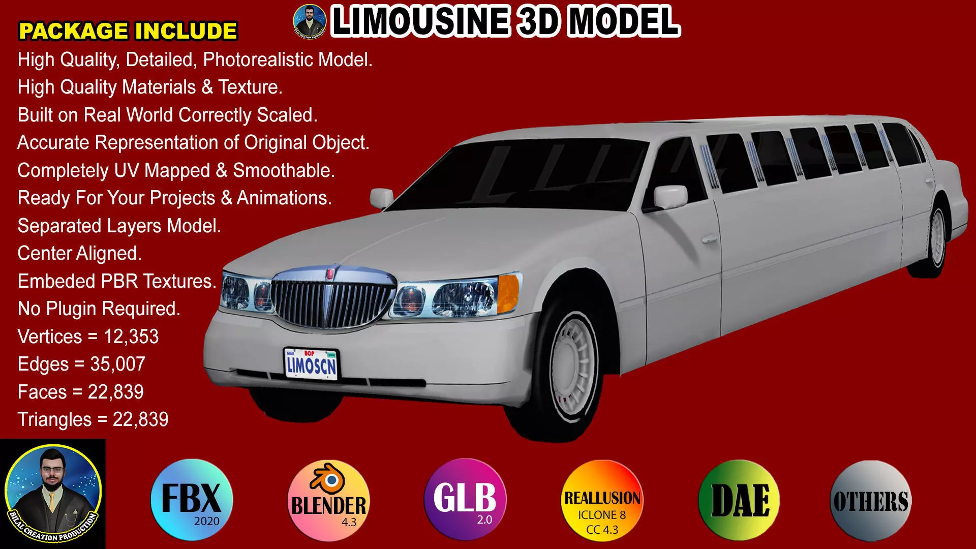 3D Realistic LIMOUSINE LUXURY CAR