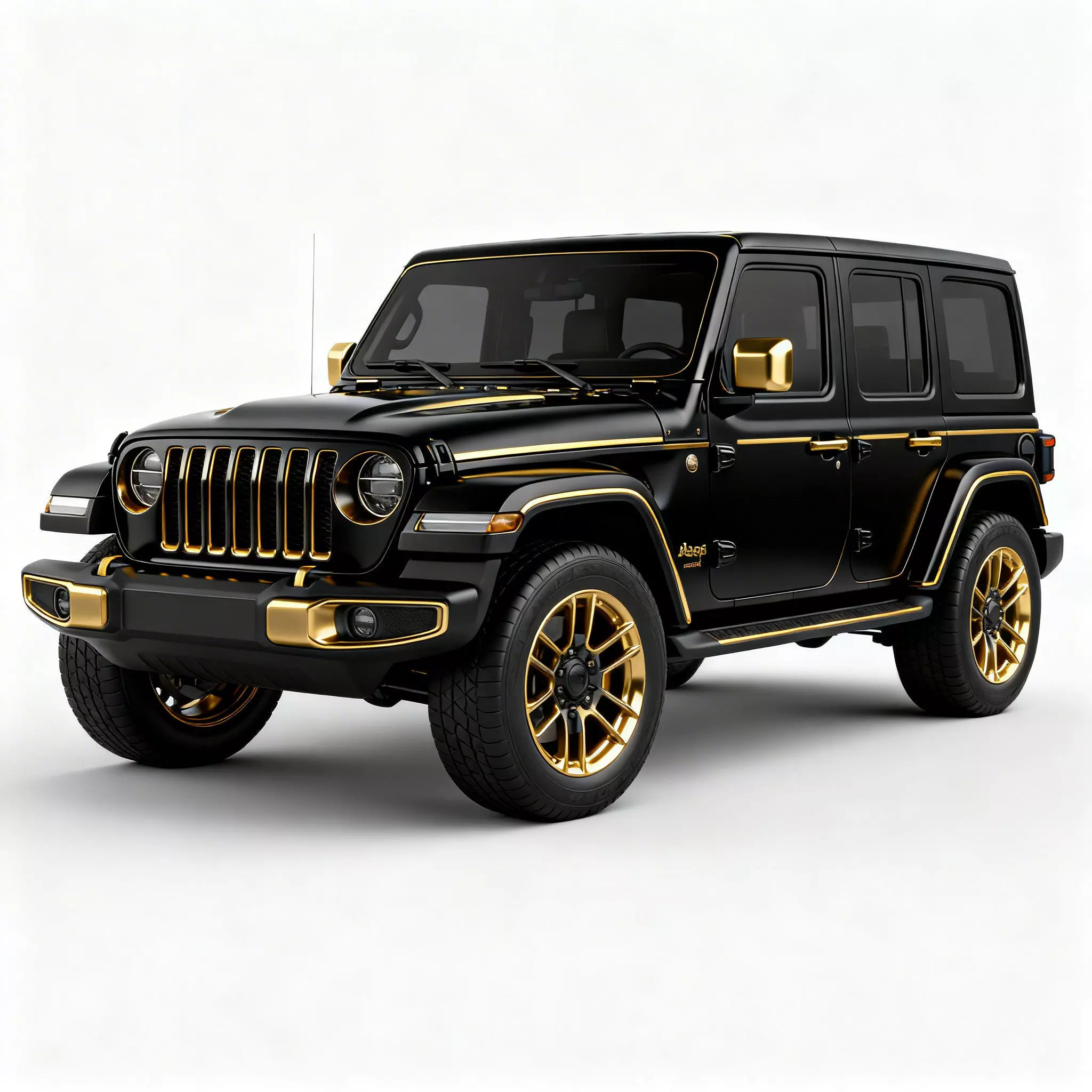 Tags3D model, luxury jeep, off-road, 4x4, automotive, black and gold, custom car, SUV, premium asset, vehicle design, matte finish, metallic gold, alloy wheels, transportation,