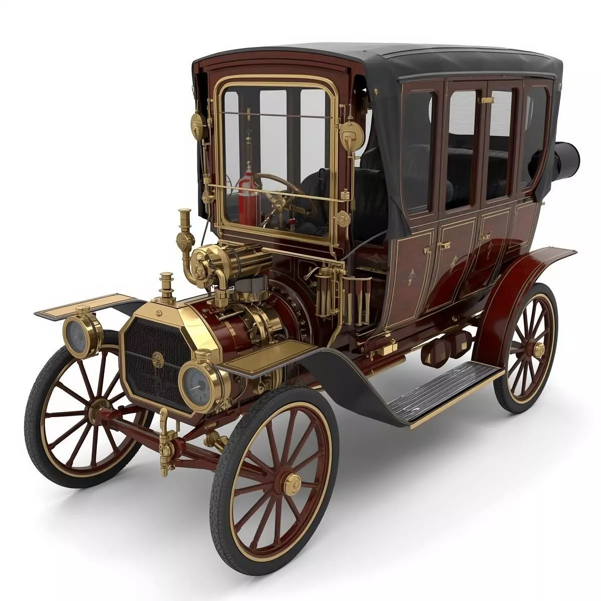 Tagssteampunk, car, automobile, tourer, luxury, vintage, victorian, industrial, brass, wood, steam engine, leather interior, vehicle, 3d model, game asset
