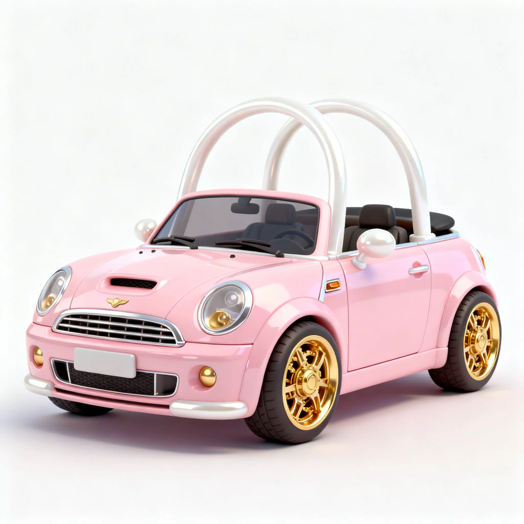 Soft Pastel Pink PaletteThe vehicle is finished in a smooth, candy-coated pastel pink paint. The color is solid and clean, providing a soft visual contrast against the high-gloss metallic elements and reinforcing the toy-like luxury theme.