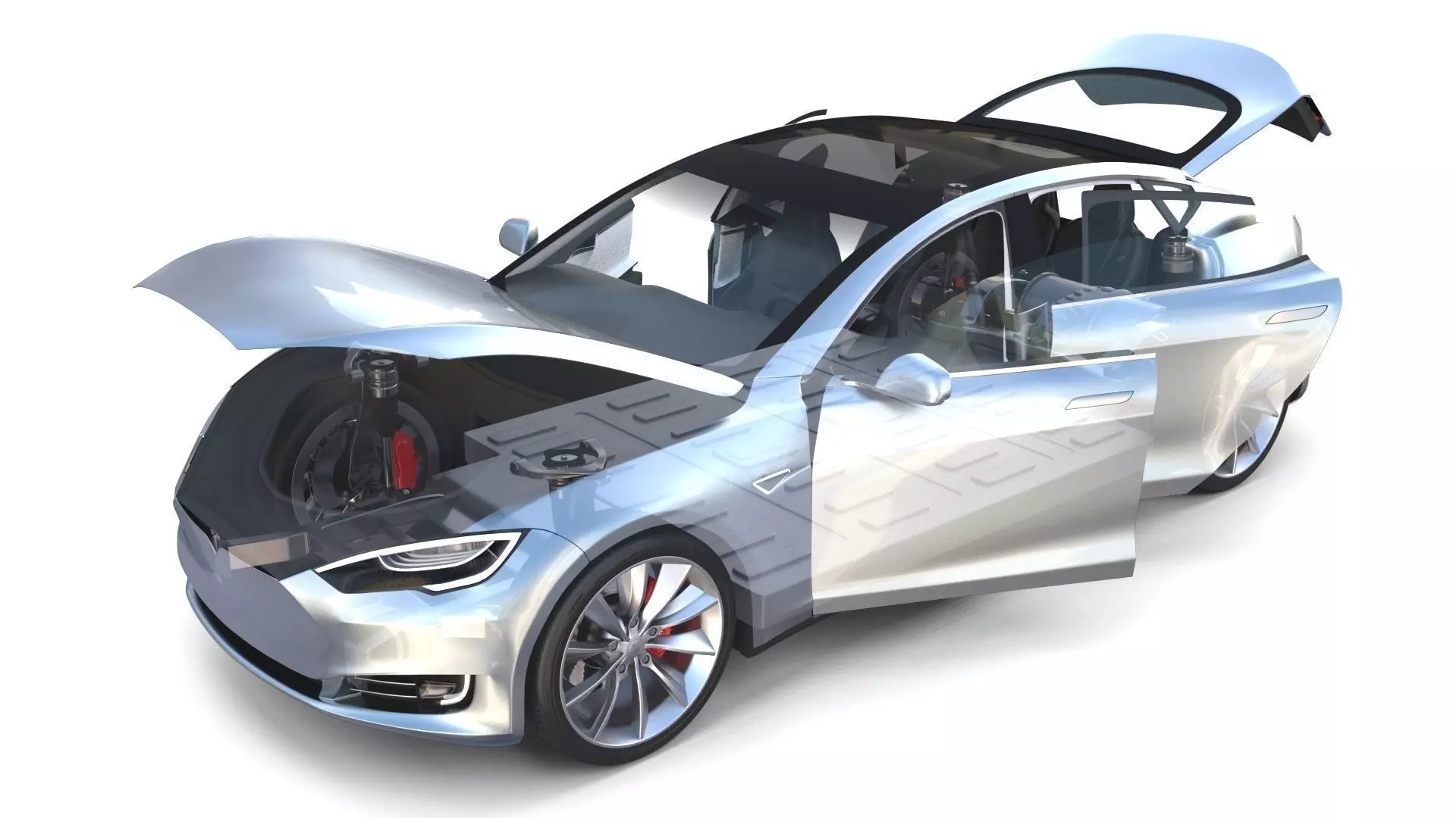 A very accurate model of a Tesla Model S 2016 (Facelifted Model) with a HIGHLY DETAILED INTERIOR AND CHASSIS, WITH ENGINE, SUSPENSION AND BRAKES MODELED.