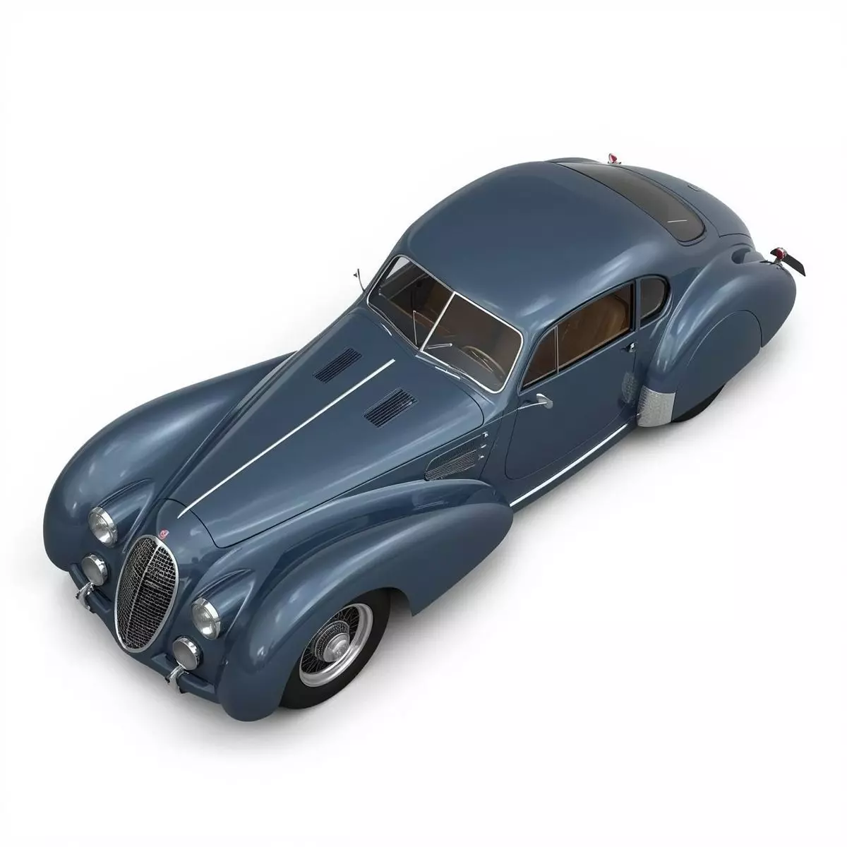 Files Included: FBX, GLB, OBJ, STL, ZIP (Textures).Quick Tip: The Hood and Doors are separate mesh groups. You can easily script the hood to open to reveal a detailed engine bay or change the blue paint to Racing Silver to transform this luxury cruiser into a legendary Grand Prix competitor.