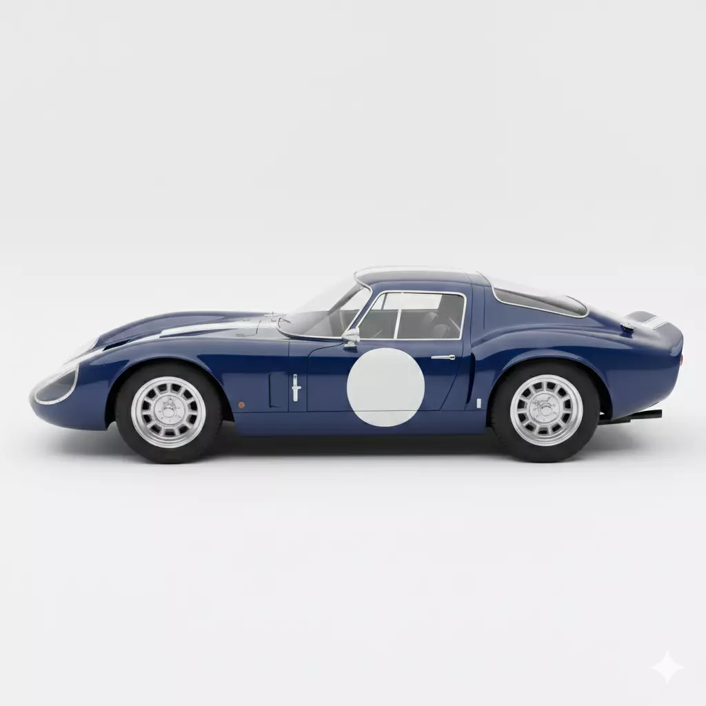 This high-precision 3D model recreates the legendary 1964 Shelby Daytona Coupe, the aerodynamic masterpiece designed to take on the world’s best on the endurance racing circuit. The asset is finished in a rich Guardsman Blue with iconic Wimbledon White racing stripes and side roundels. Every signature curve is faithfully modeled, from the elongated nose and covered headlights to the distinctive Kammback chopped tail. The exterior features authentic period details such as the side-exit exhaust pipes, chrome fuel filler cap, and classic Halibrand-style wheels with knock-off hubs. Inside, the sparse racing cockpit is visible through the wrap-around glass, featuring a wood-rimmed steering wheel and vintage gauges. This asset is an essential choice for historic racing sims, automotive documentaries, or digital galleries celebrating the pinnacle of 1960s American racing design.