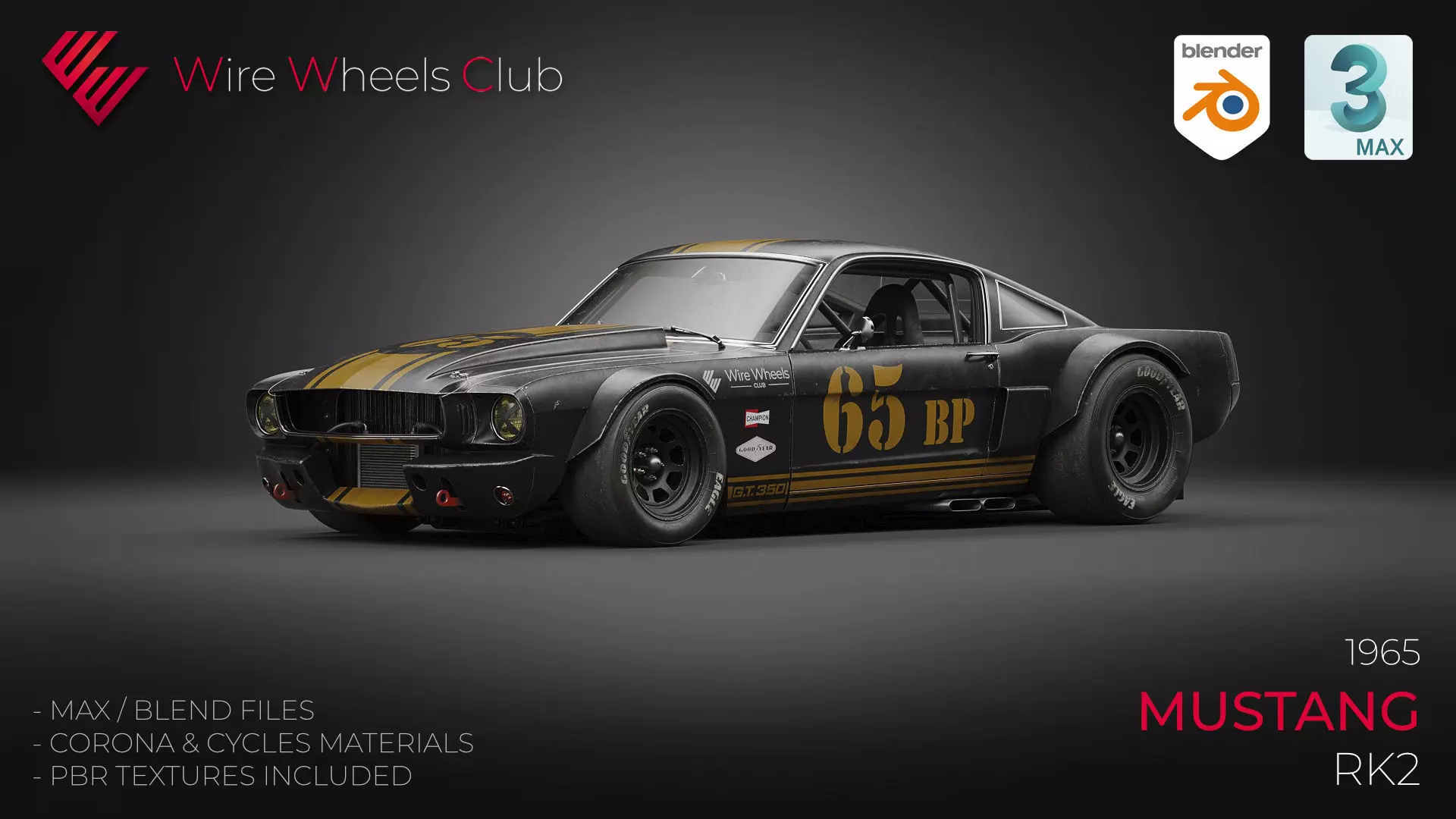 This is the Advanced version of the Wire Wheels Club’ Mustang RK2 3D model.