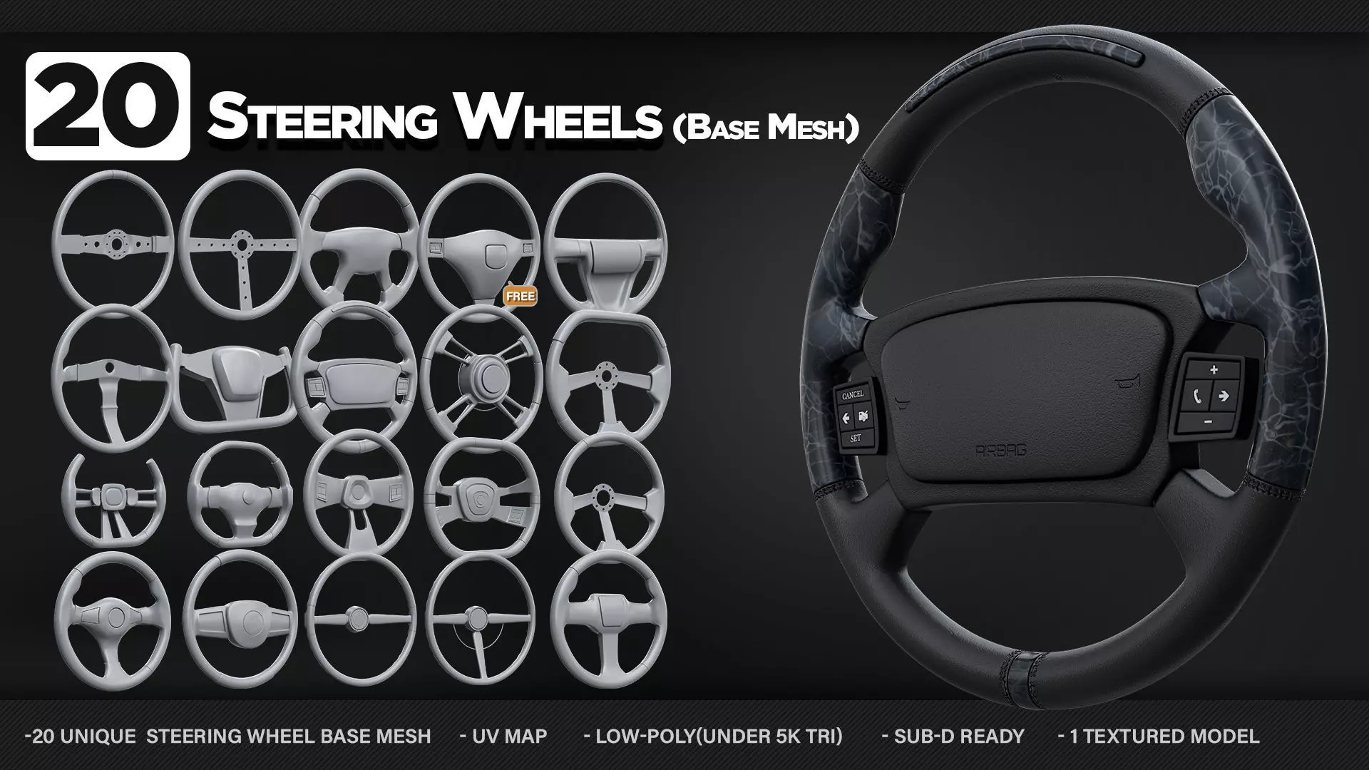 This product includes 20 unique low steering wheel models as base meshes to speed up your project. They turn to a high-poly model easily and perfectly by adding subdivision level. Low-poly models are under the 5K triangle which is perfect to use these models as game-ready assets.watch the video on youtube: https://youtu.be/rbBMe0qmFlA