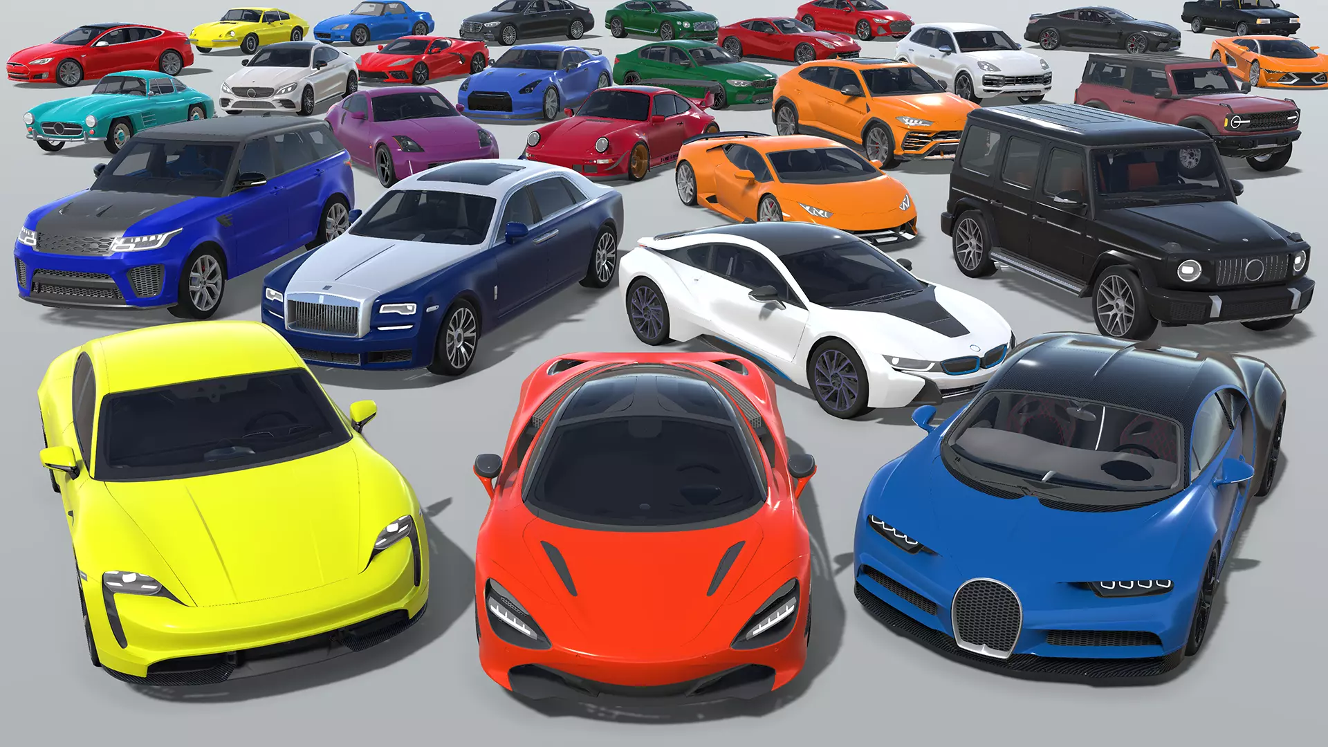 This low-poly 3D car pack includes 30 high-quality vehicles optimized for mobile games. The collection features luxury cars, SUVs, sports cars, and classic cars, all designed with detailed interiors while maintaining performance efficiency.
