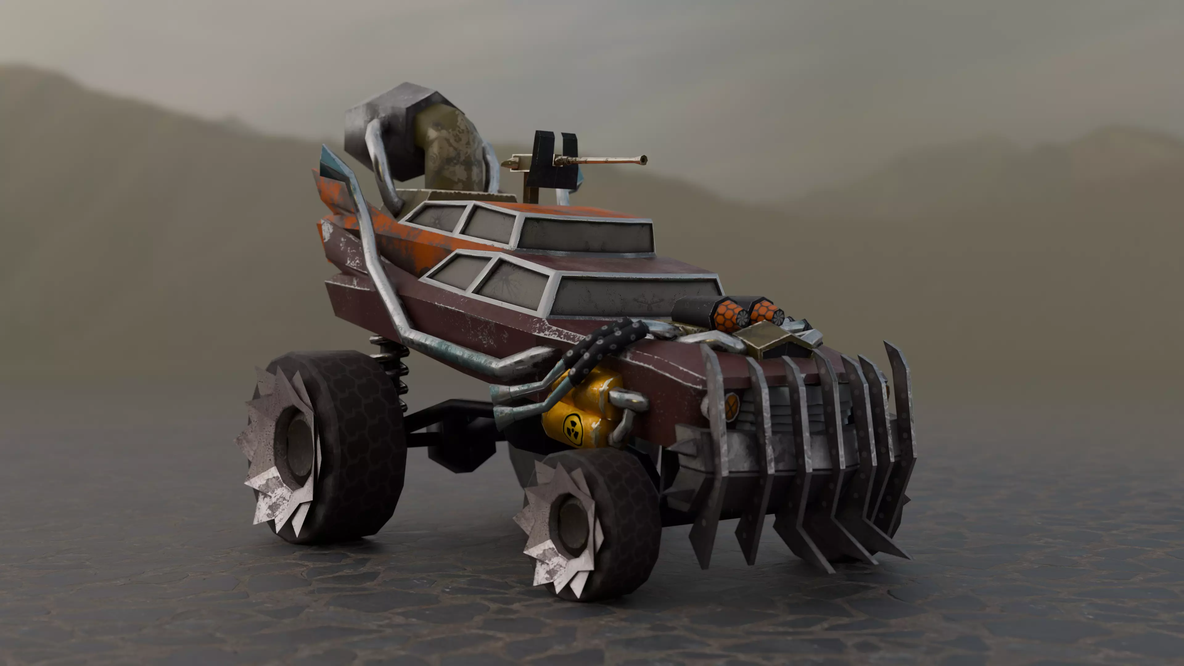 We present you a high-quality low-poly model of a car for post-apocalyptic worlds, ideal for games, animation in your projects. This brutal car is designed to survive in conditions of chaos and destruction, equipped with armored panels, spikes and homemade protective elements.