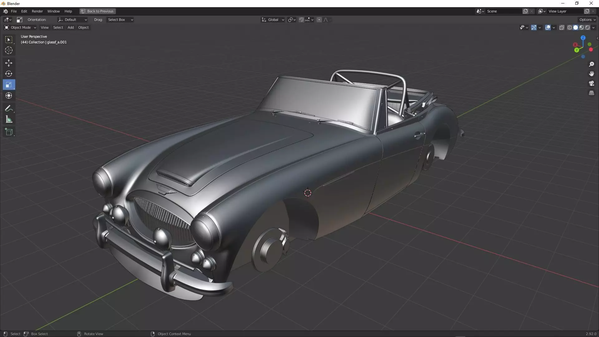 The model has material settings that define how surfaces look (color, shine, transparency, etc.).