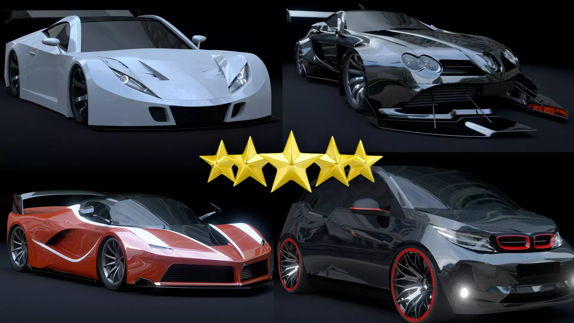 This pack includes 4 High-quality 3D models of cars. Interior parts of cars are also modeled but with less detail. These assets are best for use in games and other VR / AR, real-time applications such as Unity or Unreal Engine.
