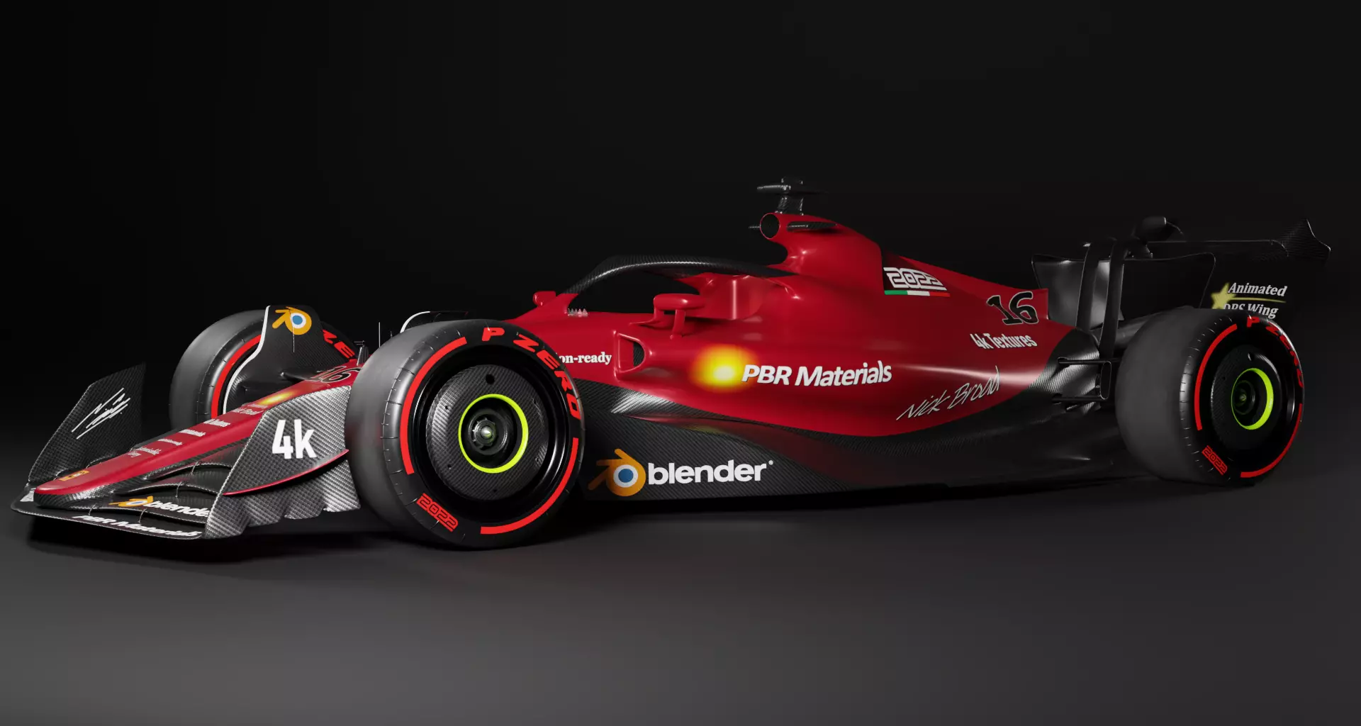 You can download the asset in FBX, OBJ and STL file formats. I would also recommend downloading the included Blender file which has all of the textures and materials set up on the model, as well as all of the individual parts I used to model the asset. I've also added extra textures into the included zip file for different tyre compounds (soft, medium and hard).