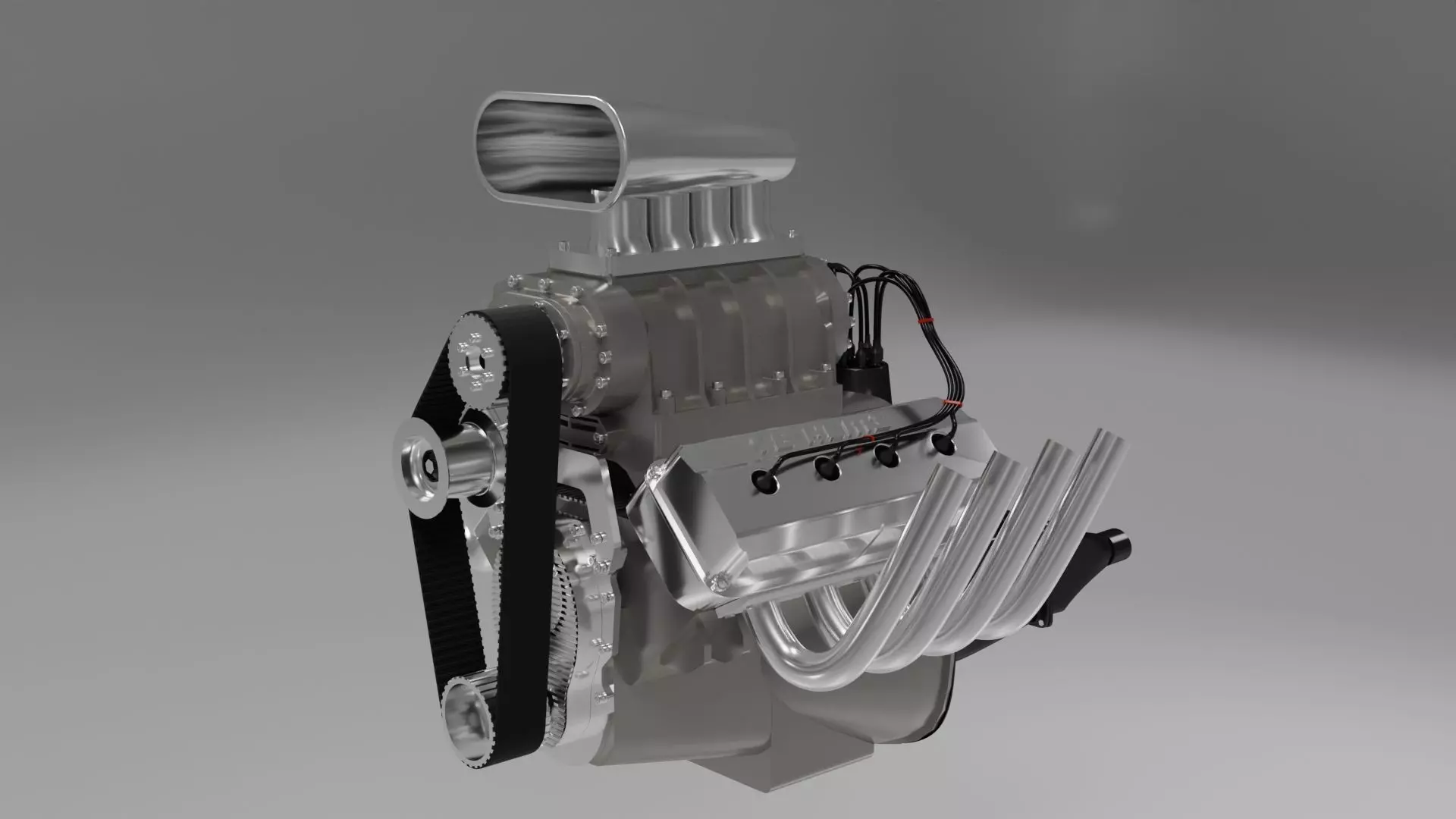 Modeled with reference to the real engine, it’s modeled accurately with the major parts present and easy to view. The high detail is great for renders. Drop this into your next car model and you have instant hotrod.