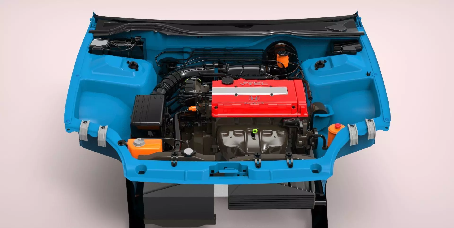 The model has material settings that define how surfaces look (color, shine, transparency, etc.).