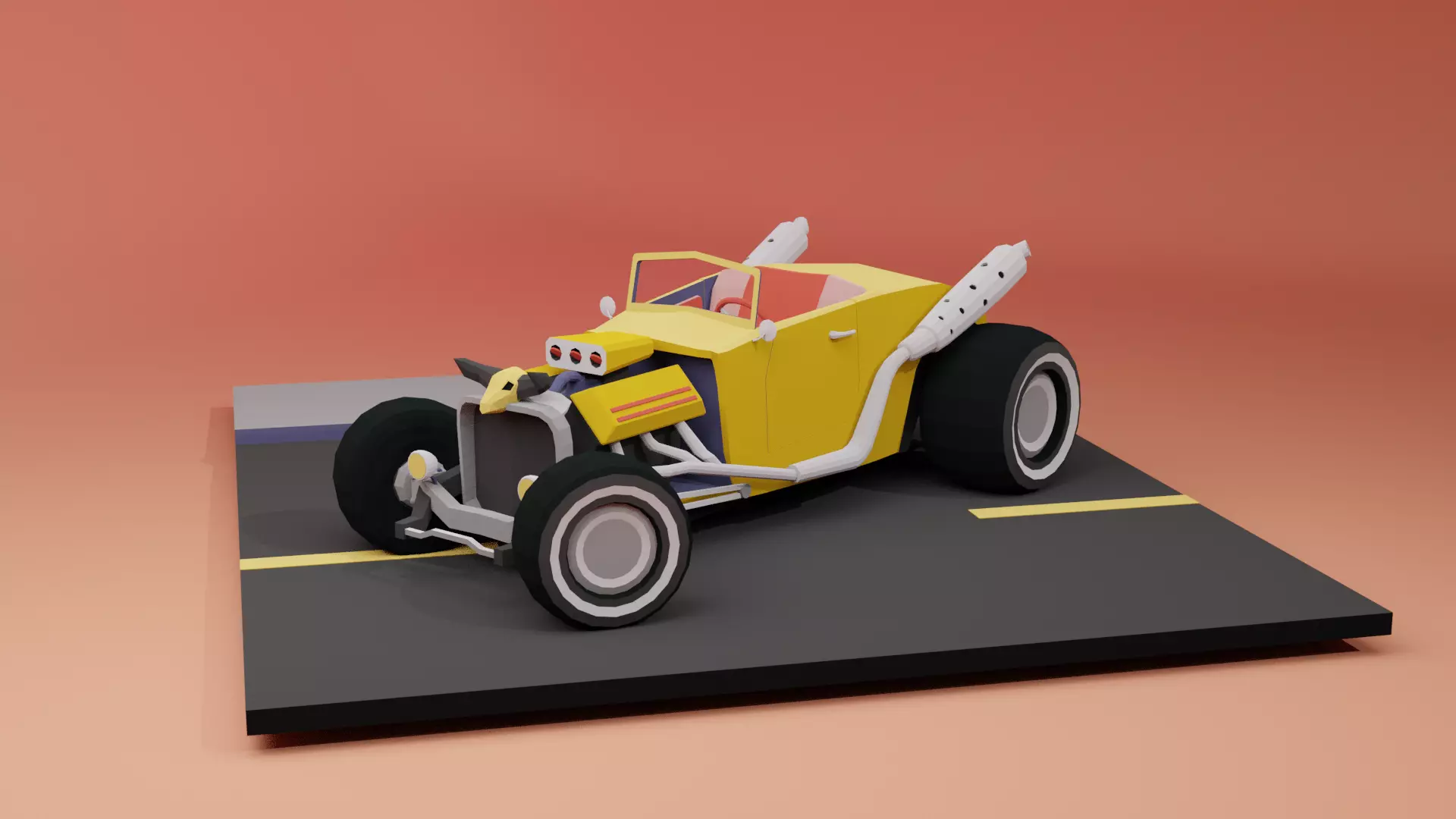 Low Poly Hot Rod 2 versions Low-poly 3D model