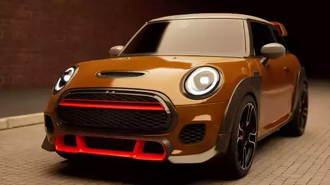 Low poly 3 d model Mini CooperJCWGP 2020 without logo .There are 2 separate models in the file .The first model is an exterior with a low-detailed interior , 48750 polygonsThree UV setsBodyWheelInteriorMetallic-Roughness textures - 4096/4096The second model is the interior of the front of the car , 23000 polygons.Three UV setsBasePanelGuagesMetallic Roughness textures - 4096/4096