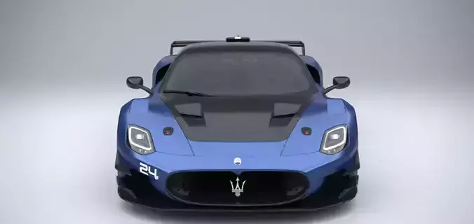 A prominent roof-mounted scoop channels air directly to the potent Nettuno V6 engine, a marvel of engineering adapted for the rigors of endurance racing. The car's profile is low and wide, glued to the ground by Pirelli P Zero racing slicks mounted on center-locking wheels. At the rear, a massive swan-neck wing generates immense downforce, ensuring stability through high-speed corners. The 24 racing number and iconic Maserati Trident logo proudly declare its competitive spirit. This vehicle represents a glorious return to GT racing for the legendary Italian marque. It is a perfect fusion of advanced technology, breathtaking aesthetics, and a storied motorsport legacy, built for nothing less than victory.