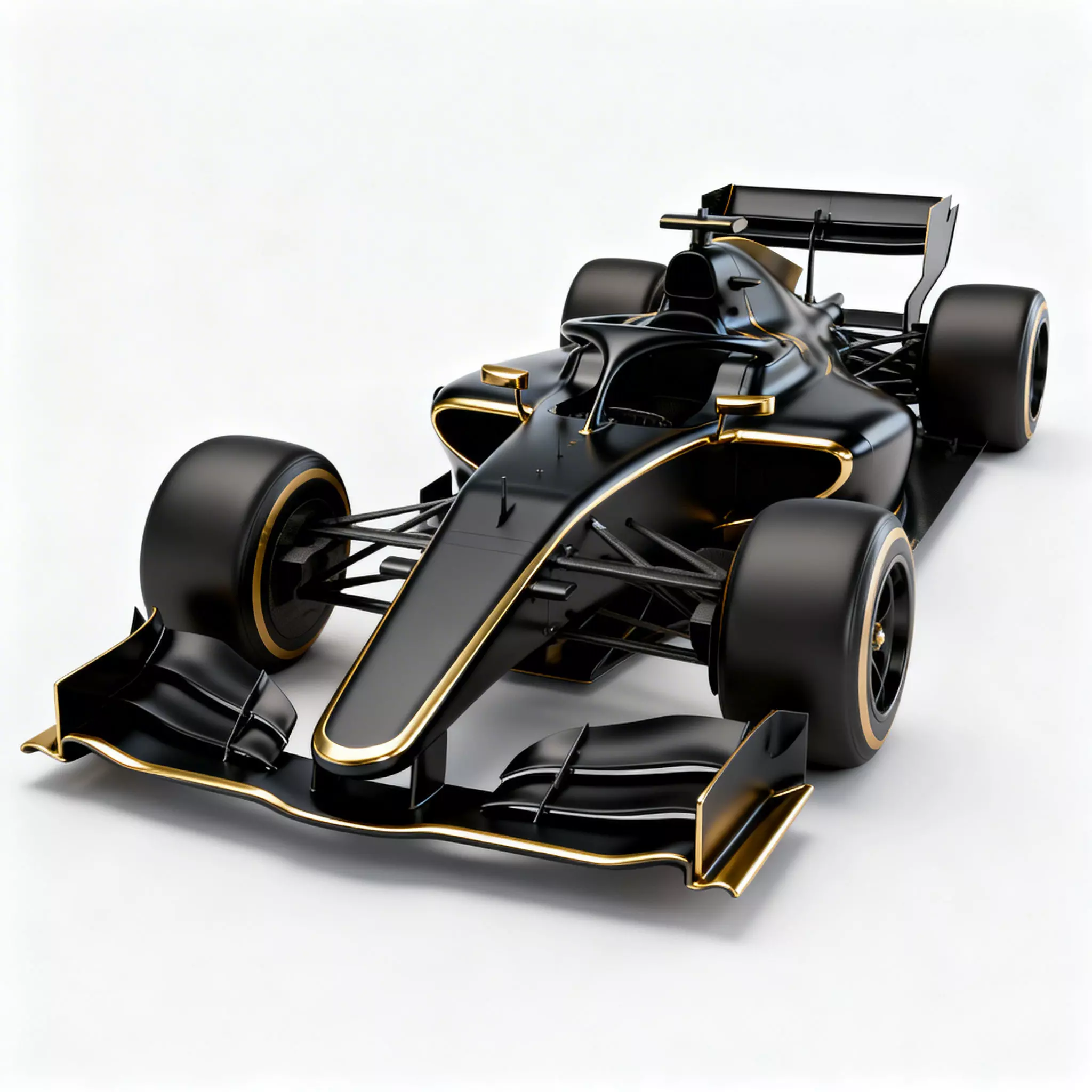 Tags3D model, Race Car, Formula Car, Open-Wheel, Matte Black, Gold Accents, Racing Vehicle, Aerodynamic Design, High-Performance, Slick Tires, Automotive Asset, Motorsport, Sleek Design, High-Fidelity, PBR Materials, Track Car, Luxury Racing, Isolated Vehicle, Carbon Fiber, Modern Race Car.