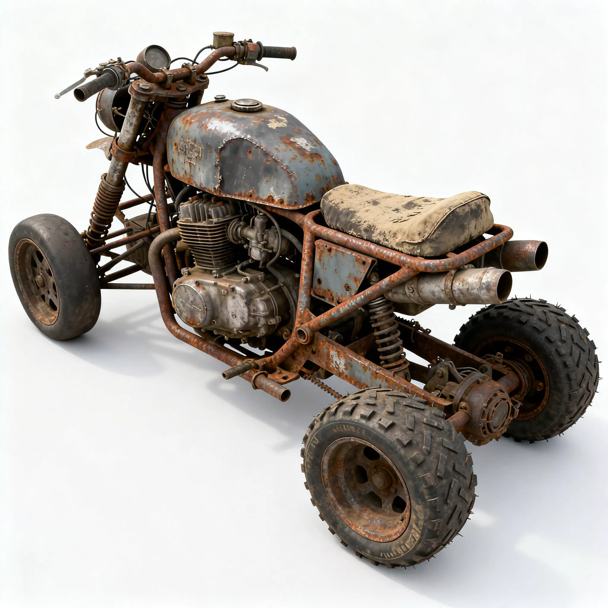 Tags3d model go kart rusty vehicle abandoned car vintage kart weathered metal industrial asset engine model post apocalyptic rustic transport realistic texture scrap metal old vehicle garden find mechanical detail textured model low racing vehicle junk car rusted frame outdoor asset