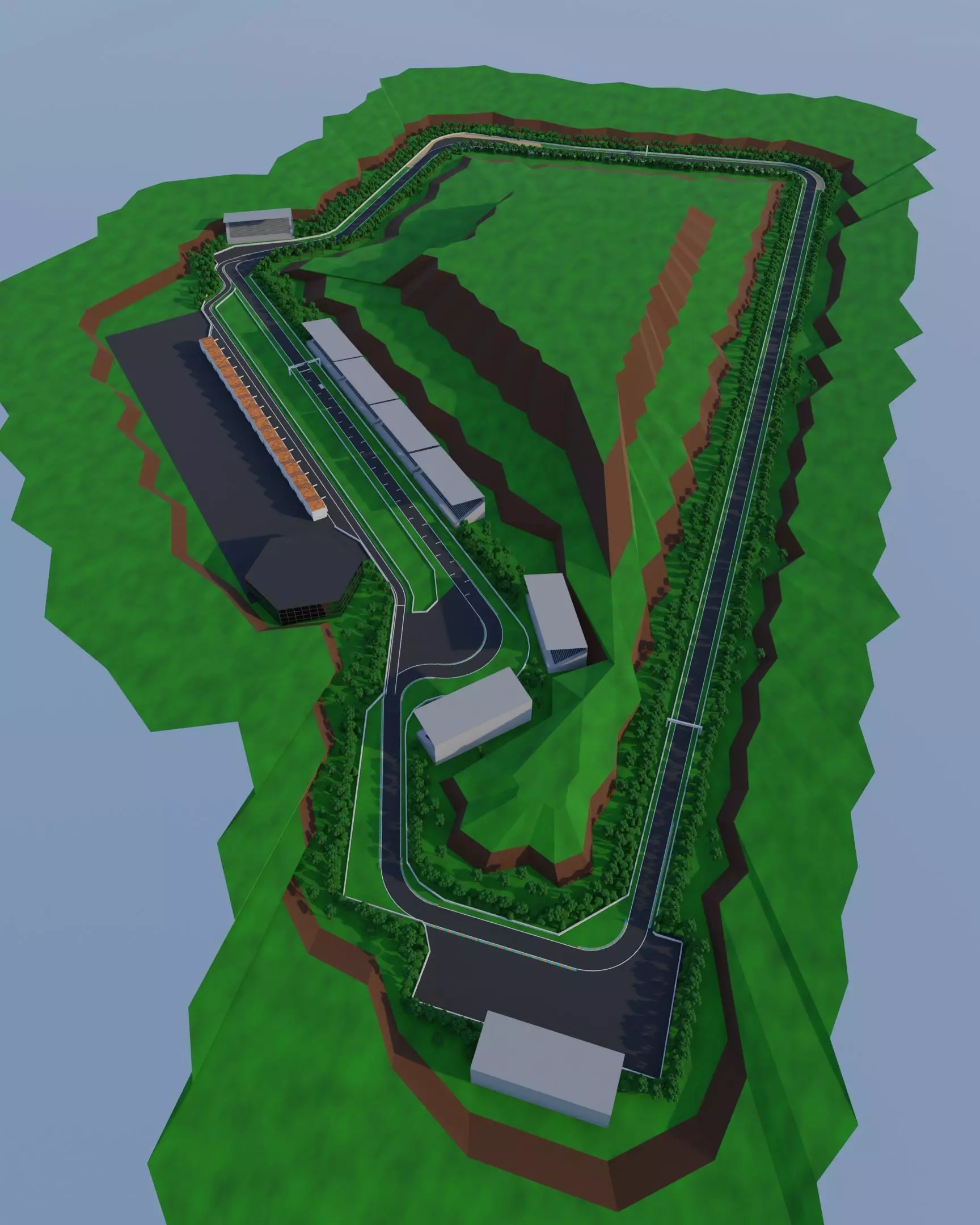 Perfect for motorsport projects needing a natural, immersive setting—this woodland racetrack offers both visual charm and functional design.