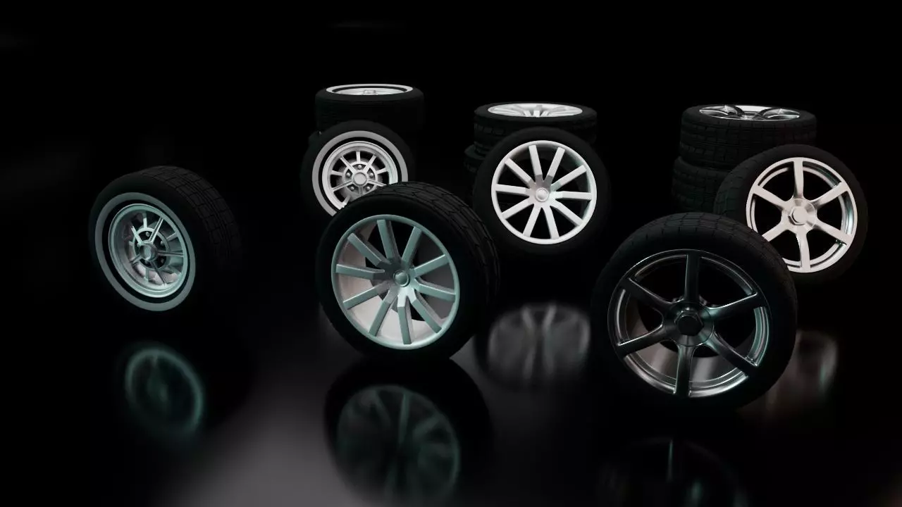 This is a 3 wheel model pack. This pack contains three different rims with thee different tires. This model is made in Autodesk Maya 2022 and rendered in Arnold 5.2.2. This pack is perfect to add wheels to your 3d model car or to use as decoration in a garage scene.