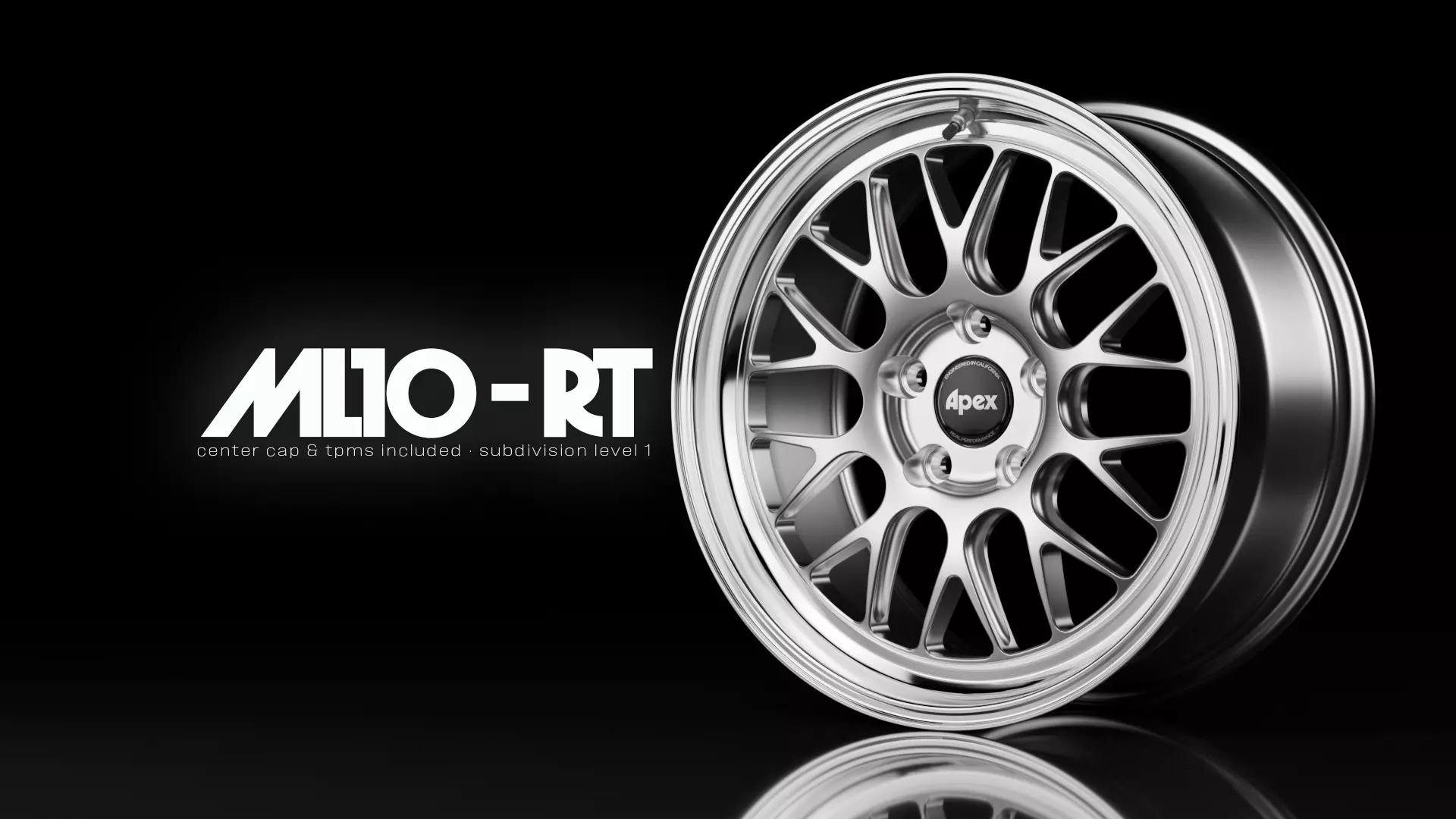 Disclaimer: This product is a fan-made 3D model that I created for visualization and rendering purposes. While it is modeled after a real-world wheel design, I did not create or design the original wheel. All trademarks, names, and design rights belong to their respective owners, Apex Wheels. This 3D model is not associated with or endorsed by Apex Wheels.