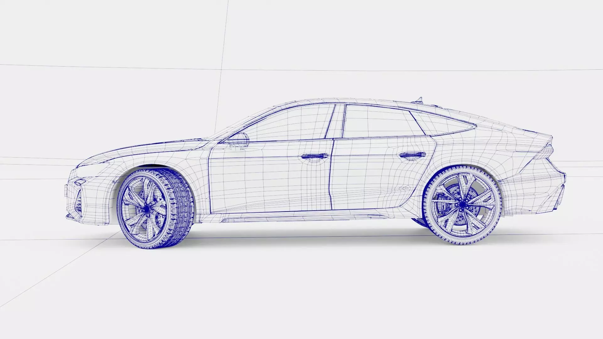 The model has material settings that define how surfaces look (color, shine, transparency, etc.).