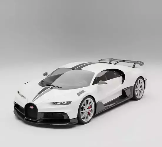 This exquisitely rendered 3D model captures the Bugatti Chiron Super Sport, a magnificent display of hypercar engineering and design, presented in a crisp, high-angle view against a pristine white studio background. The vehicle's aerodynamic silhouette is immediately striking, painted in an elegant matte white finish, sharply contrasted by bold, dual black racing stripes that gracefully sweep from the front hood over the roof and onto the rear.