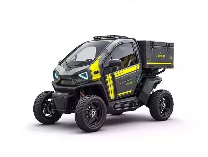 Cyberpunk Off-Road Utility Vehicle 3D ModelDescriptionThis 3D model features a compact, rugged, and heavily modified Off-Road Utility Vehicle with a distinct cyberpunk aesthetic, perfect for a scout, transport, or combat vehicle in a dystopian or heavily customized urban environment.