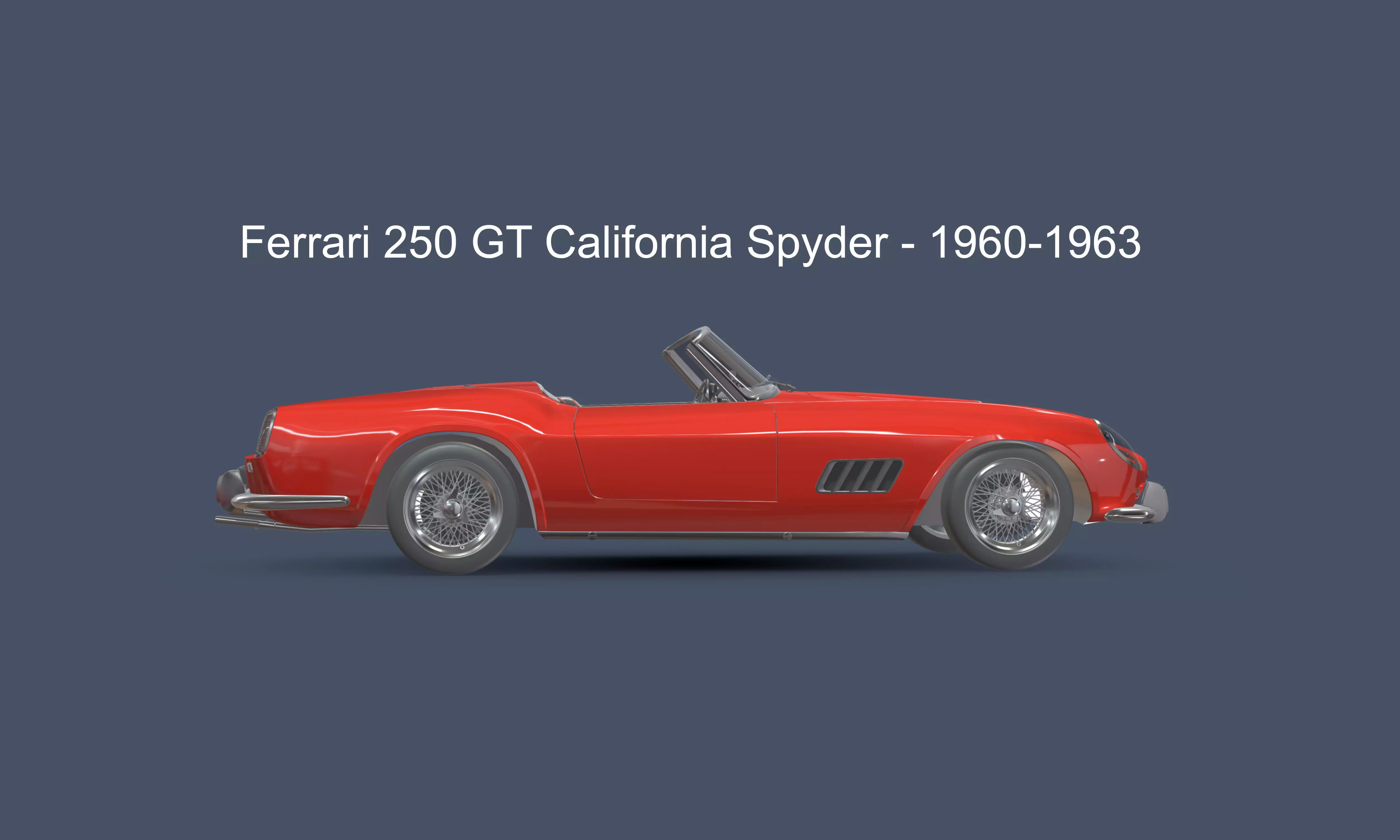Experience the timeless elegance and exhilarating performance of the Ferrari 250GT California Spyder with our mesmerizing 3D model: Embrace the Essence of Italian Automotive Excellence!