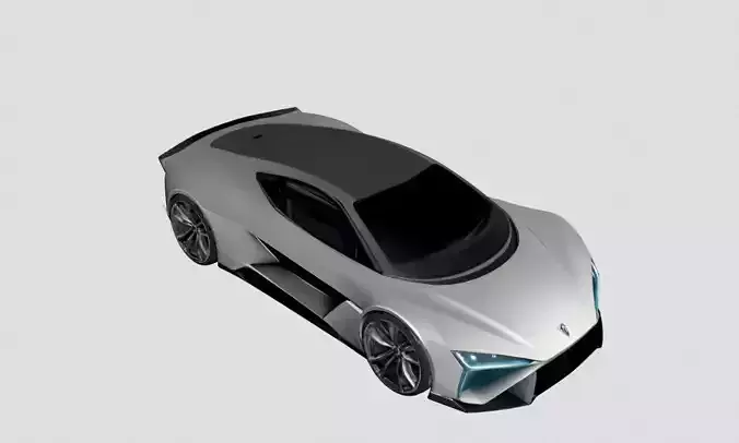 This high-quality futuristic electric sports car 3D model is designed for concept visualizations, sci-fi scenes, and digital automotive environments. The model features a sharp angular body design, low and wide stance, aggressive front air intakes, slim LED headlights, and large alloy wheels for a bold, modern appearance.