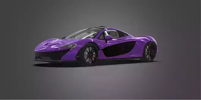This is a high-quality, photorealistic 3D model of the McLaren P1, presented in a stunning purple paint finish. The model captures the elegant aerodynamic curves and aggressive stance of the iconic hypercar, featuring detailed rims, brake calipers, carbon fiber components, and a transparent glass roof. The model is optimized for a wide range of applications and includes PBR materials for realistic lighting and reflections in modern rendering engines.