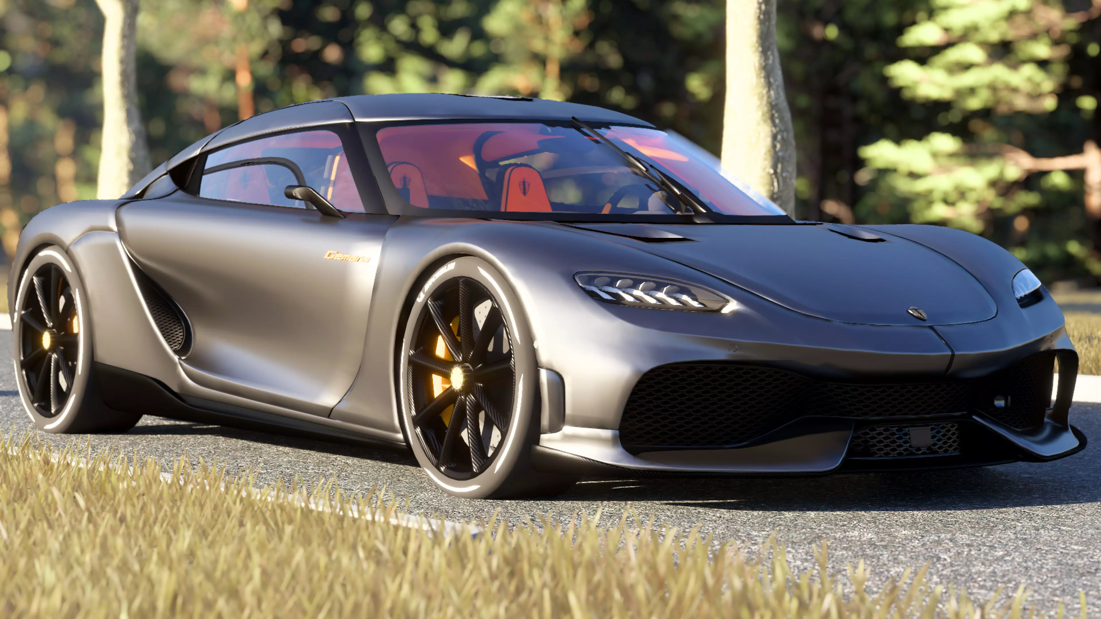 Koenigsegg Gemera 3D Model with detailed exterior that includes detailed rims and wheels (not the rubber) and medium detailed interiors but the seats are also detailed. Tires are seperated in 3d so they can be rotated and animated if its going to be used in video games or animations, also engine bay is highly detailed too. Rest of the car parts cannot move such as doors and mirrors, but they can get seperated easily if needed. Render scene is not included but you can get it if you contact me after buying the model.