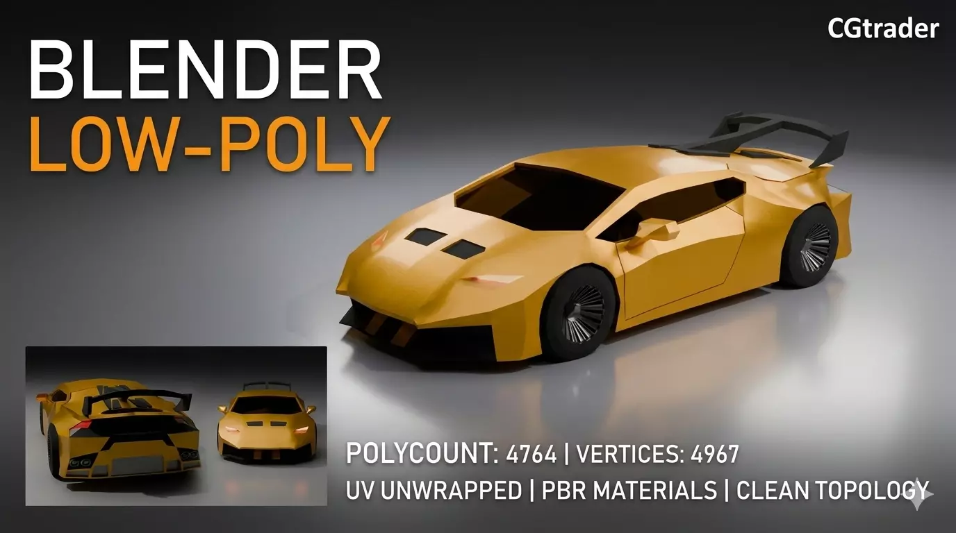 Please note that this low-poly custom super car model is a masterfully crafted asset that strikes a perfect balance between performance efficiency and high-end visual appeal. Designed specifically for real-time applications like gaming or interactive visualizations, this sleek vehicle captures the aggressive essence of modern supercars through its sharp, angular silhouette and bold golden-metallic finish. Despite its optimized geometry, the model maintains a powerful presence thanks to its meticulously clean mesh topology and professional craftsmanship.