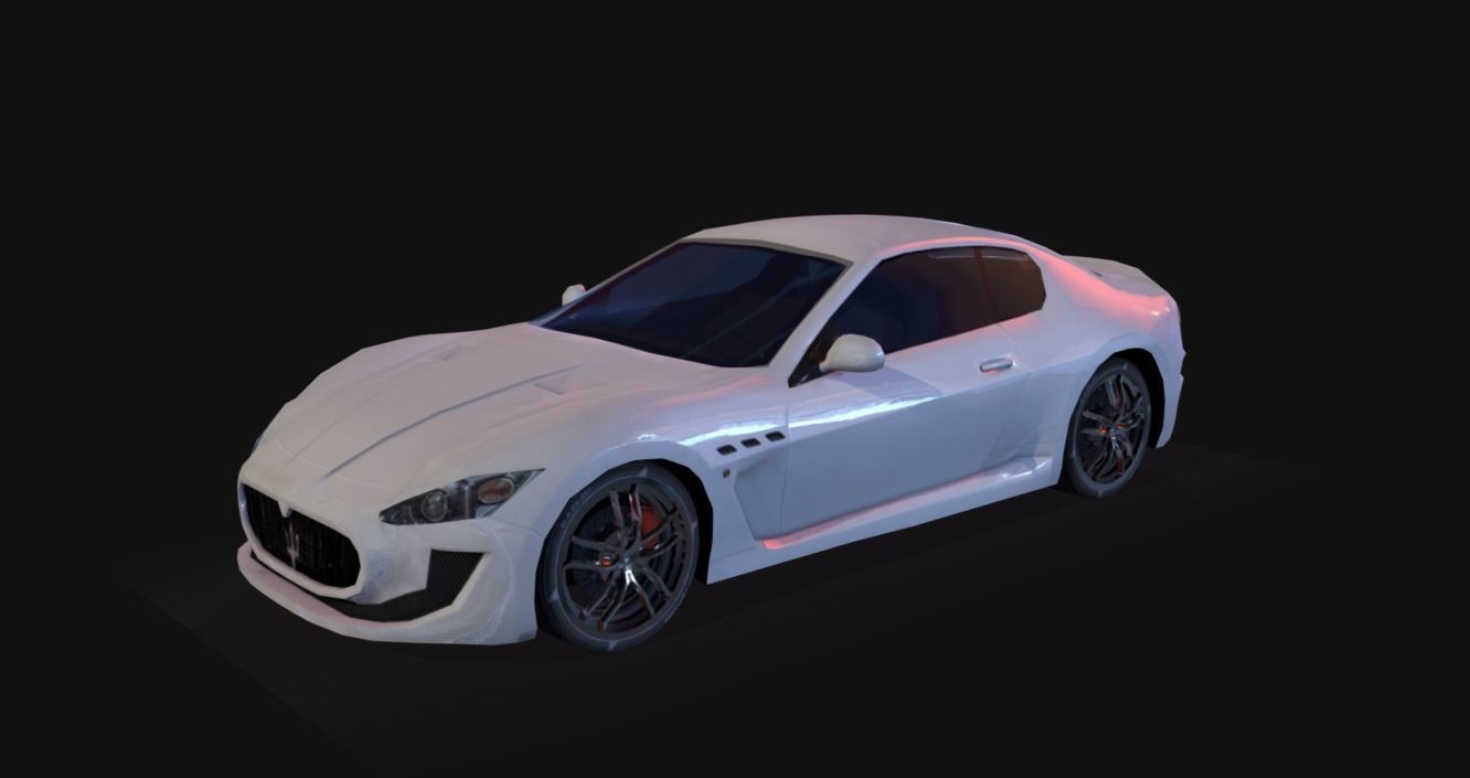 Maserati Gran Turismo low-poly model with 5330 polys 9966 tris. Includes mesh, Uvs, diffuse texture, Normal Map and Specular map. But with only the diffuse still look good if it needs to be optimized. The interior is roughly modeled to low the polygons down. Windows have no texture but they have UVs. If there are any questions I will gladly anwer them.