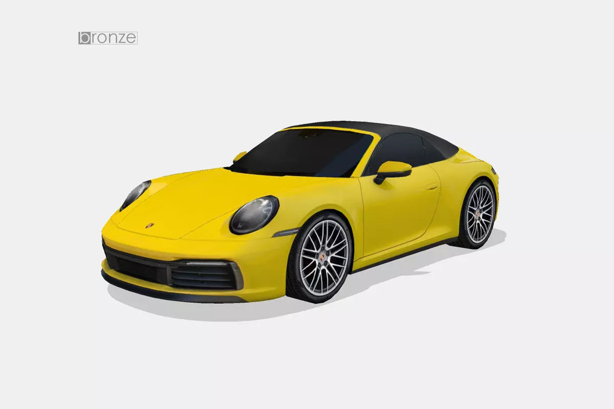 3d model of the 2020 Porsche 911 Cabriolet, 992 model, a two-door high performance rear-engined sports car.