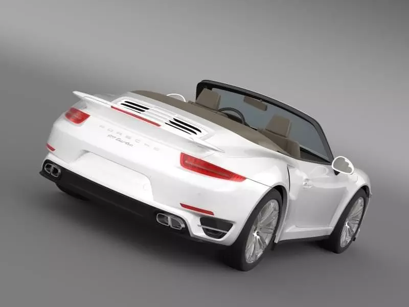 Let me represent you high poly 3d model of Porsche 911 Turbo Cabrio 2014 (The Porsche 911 (pronounced Nine Eleven or German: Neunelfer) is the flagship of the current line up of Porsche. It is a two-door grand tourer made by Porsche AG of Stuttgart, Germany. It has a distinctive design, rear-engined and with independent rear suspension, an evolution of the swing axle on the Porsche 356.) with high detail.