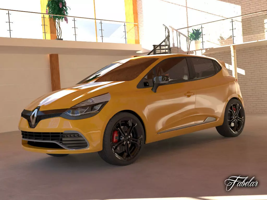Renault Clio RS 2013 rigged 3D model, standard materials and multiple import formats.