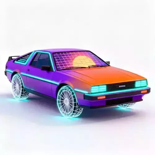 The Overall Concept This vehicle is the definitive icon of the Outrun or Synthwave genre. It takes a classic 1980s wedge-shaped sports car (resembling a DeLorean or Lotus Esprit) and infuses it with a digital, neon-soaked aesthetic perfect for a rhythm game or retro racer.