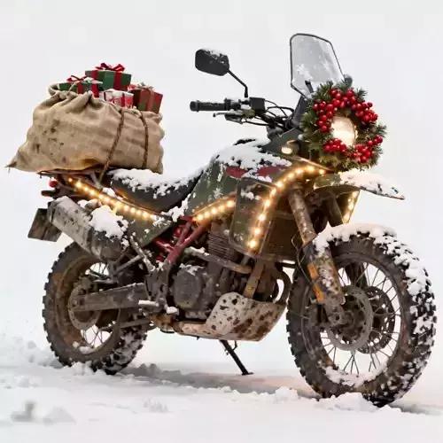 Rugged Christmas Adventure Motorcycle 3D Model – Festive Delivery Bike
